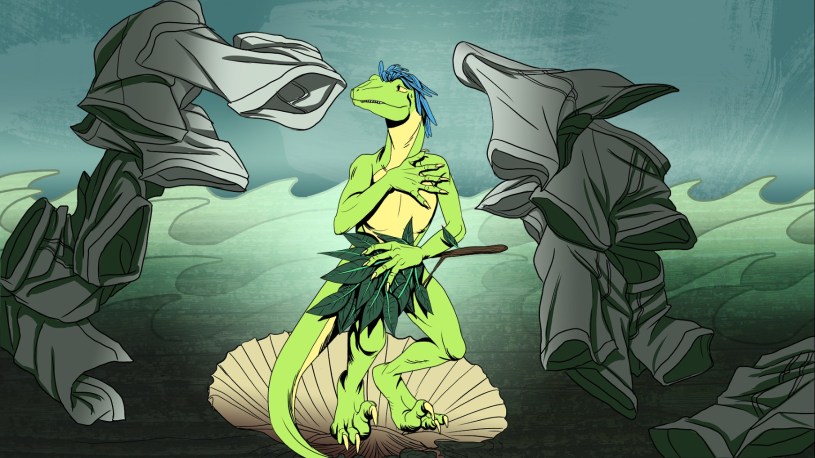 Oh my. Well, basically you play a young girl named Stella who is moving to Ladle in Ontario. For some reason, Ladle is where all the cool kids cryptids like to live. Stella wants to get a boyfriend or girlfriend, and in this game, has her pick between three people: Day Lilly (fairy), Taylor Tall-toe (bigfoot), or Robert Raptorson (… a raptor).